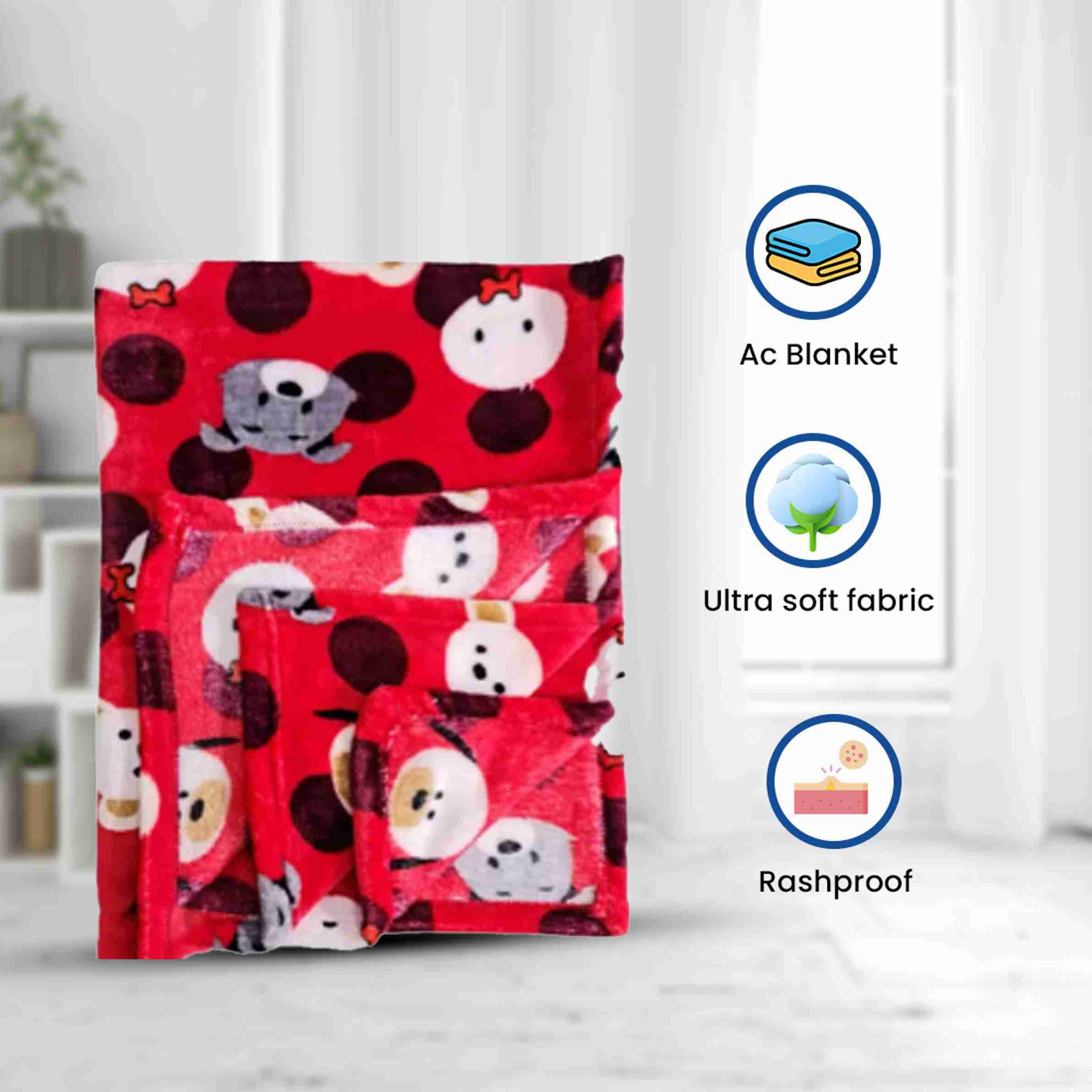 Printed Single AC Blanket for AC Room (Microfiber, Red)