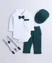 BUMZEE Boys Party(Festive) Bodysuit Pant, Suspenders, Cap (Bottle Green & White)
