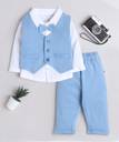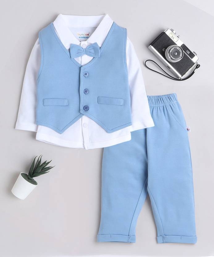 Need an instant outfit that's ready to party? This formal set has been designed in a smart, simple way for baby boy by Bumzee. It connects the soft 100% cotton shirt, waistcoat and Shorts, as well as the matching color bow tie. Your little baby will be best-dressed at his next event in this comfy (and cute) outfit! Our baby boy party clothes will have him ready to go exploring with friends, neighbors, and cousins, and still be family-photo ready. with smart shorts and full sleeved shirt, this coordinating set is finished with a smart waistcoat. whether your little boy wears these three pieces together or mixes them with other pieces, they are a versatile addition to his wardrobe. Note - The pocket in Waistcoat and pant is for show only. Shirt : Round Chest - 58 cms || Length - 36 cms :: Waistcoat : Round Chest - 58 cms || Length - 30.5 cms || To Fit Waist - 50 cms :: Length - 43 cms.