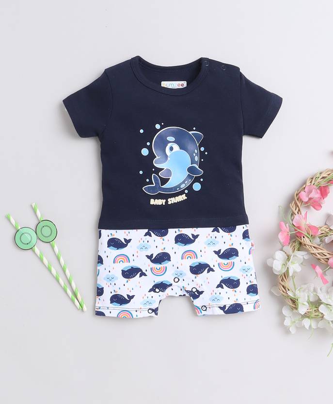 BUMZEE Romper For Baby Boys Casual Graphic Print Pure Cotton (Dark Blue, Pack of 1)