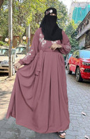 Buraque Designer Polyester Solid Abaya (Pink, Black)