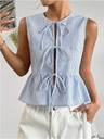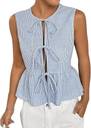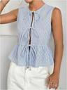 Women's Cotton Striped Bow Tie Up Ruffle Hem Sleeveless Top