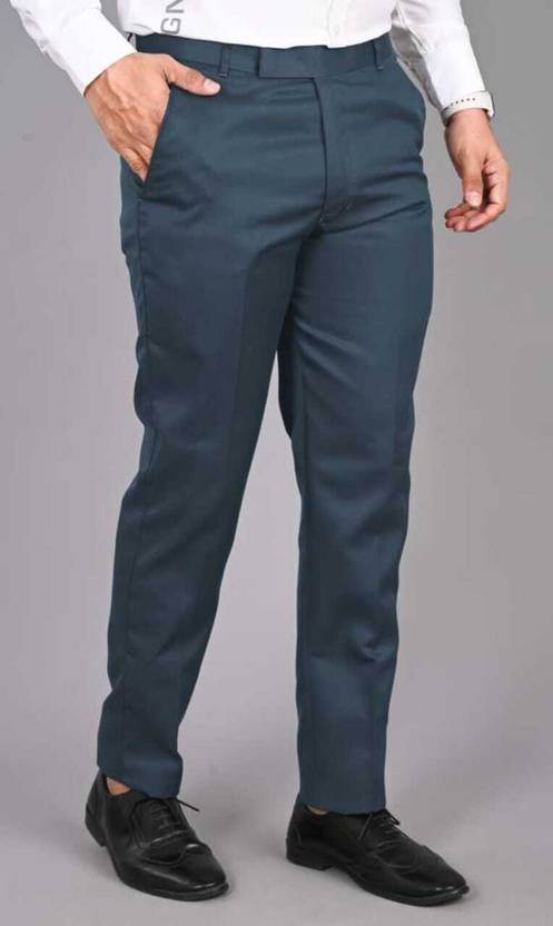 Pack of 4 Men Regular Fit Light Blue Cotton Blend Trousers