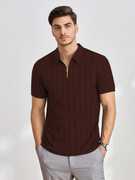 BURRMELLOW Men Self Design Polo Neck Polyester Brown T-Shirt