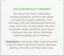 DEVELOPED WITH DERMATOLOGISTS: Burt’s Bees night cream for sensitive skin is developed with dermatologists and has received the National Eczema Association Seal of Acceptance., IMPROVE SKIN’S MOISTURE BARRIER: This formula has an intentional blend of humectants, oils and squalane to improve your skin's moisture barrier, when used daily as directed, while soothing visible redness and irritation., BURT’S BEES SYNERGISTIC BLEND OF ALOE, RICE MILK AND HONEY: Clinically shown to calm and soothe sensitive skin, reducing visible signs of redness and helping to restore the skin’s moisture barrier.