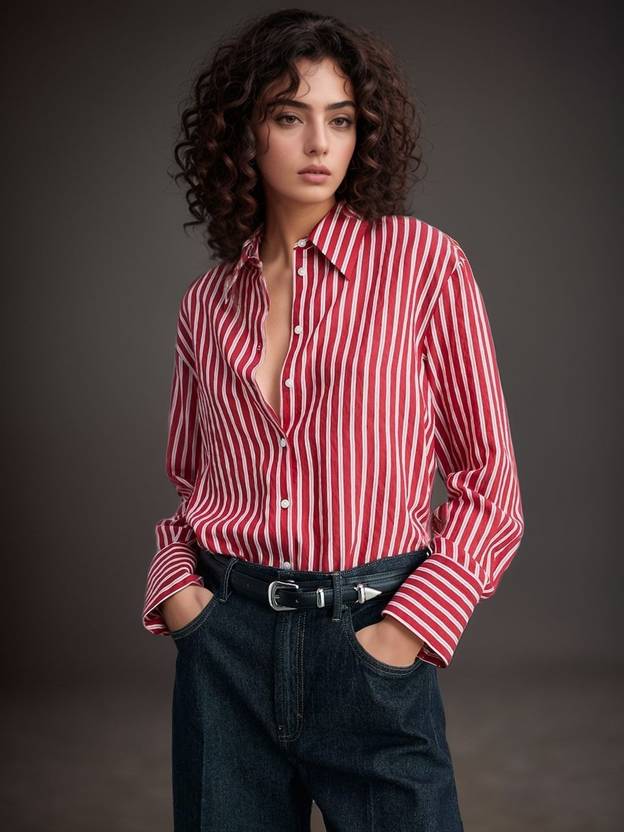 BuscottĀ Women Regular Fit Striped Spread Collar Casual Shirt