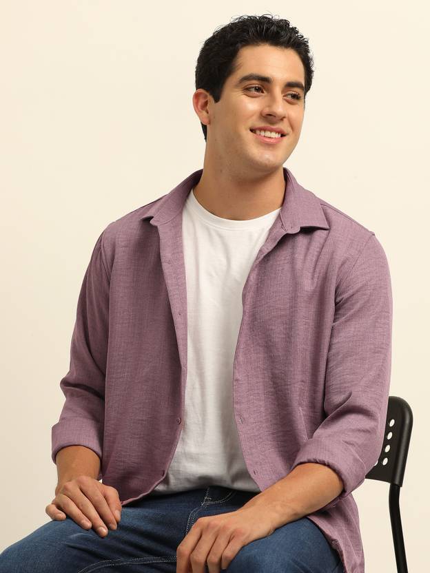 Men Regular Fit Solid Spread Collar Casual Shirt
