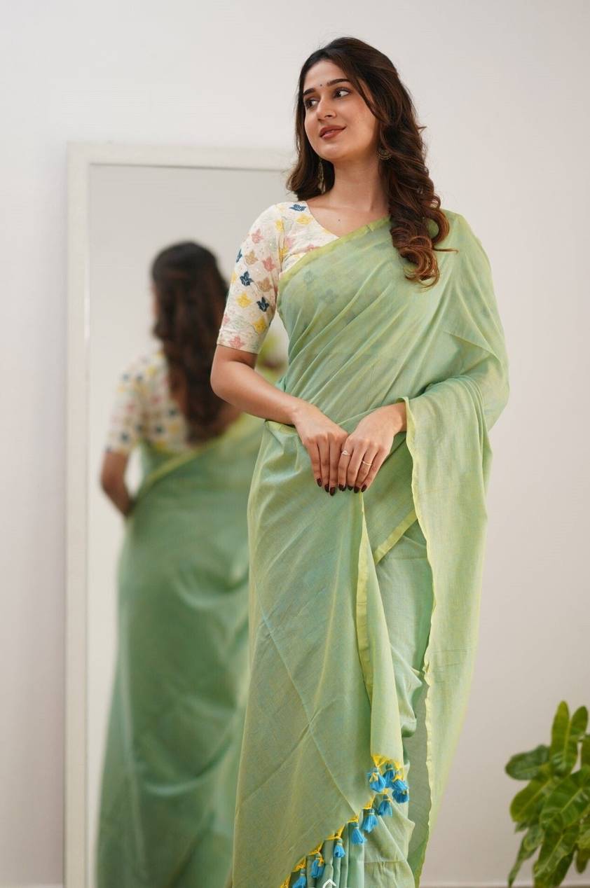 around the body or styled with a Modern Twist, this cotton saree is sure to Turn Heads and inspire Admiration.