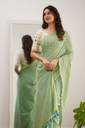 The saree's Natural Texture and Subtle Sheen add a touch of Elegance and Refined Style,