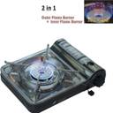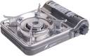 Automatic shut-off safety lock. Piezo ignitor safety lock. Heat conduction system. 9560BTU, Adjustable flame. Long textured grates. Durable Carrying case. Gas Canister shown in image for Representational Purposes Only. Sturdy and Compact. Made with Rolled Steel .