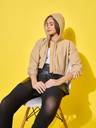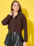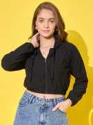This women’s cotton ribbed short casual hoodie jacket is perfect for laid-back style. It features front pockets for convenience, a secure zipper closure, and an adjustable drawstring hoodie for a snug fit. The soft cotton ribbed fabric ensures comfort, making it an ideal choice for everyday wear or casual outings.