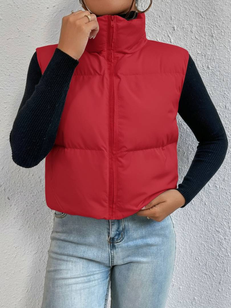 Stay warm and stylish with this puffer vest for women. Featuring a sleek, sleeveless design, it’s perfect for layering over your favorite sweater or top. Crafted from lightweight, breathable polyester material, this jacket ensures comfort and warmth during chilly days. Ideal for casual and outdoor wear.