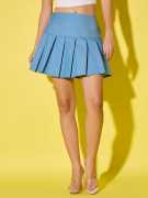 BuyNewTrend Solid Women Pleated Dark Blue Skirt