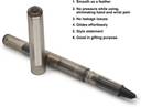 SALIENT FEATURES : • smooth as a feature • gives no pressure while writing ; eliminating hand and wrist pain • no leakage issues • glides effortlessly • style statement • good in gifting purpose • the nib used is elegantly medium that writes like a dream. • It has a premium twist converter which is free • The look designed is of a perfect stare forever.