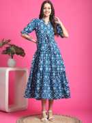 BuzzBuy Women Fit and Flare Black Midi/Calf Length Dress