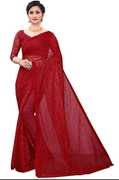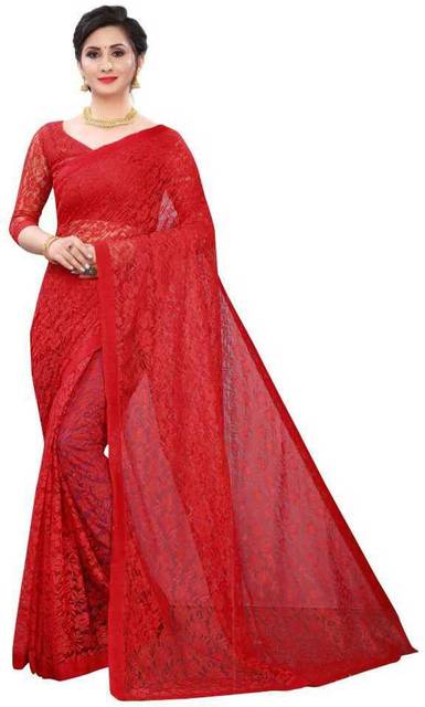 bv design Self Design Lucknow Chikankari Net Saree (Red)