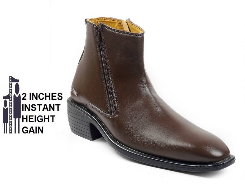 Men's Brown Height increasing Latest Formal Party wear Zipper Slip On For Men (Brown , 10)