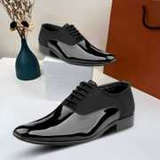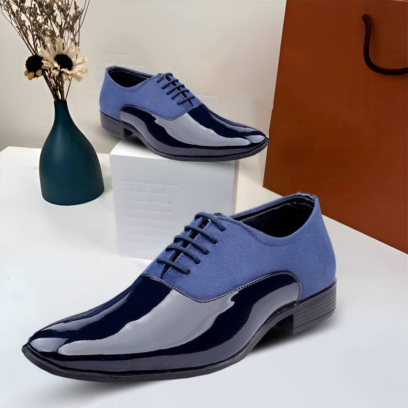 Men's Stylish Blue Casual Formal Laceup Oxford Shoes With Patent Material