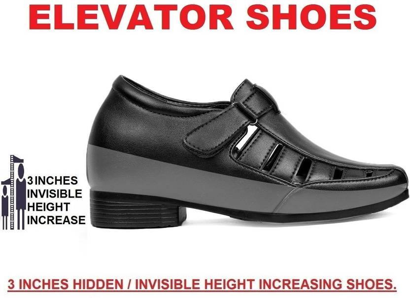 Bxxy 3 Inches Elevator/Height Increasing Casual Roman Sandals, "Hidden Heel Technology" is used, Export Quality Leather inner lining adds to comfort. Designed for perfect fit, Hidden Height Increasing+Heel Height=3 Inches,Material- Leather, Sole - Air Mix. Occasion - Formal/Party Wear. Items Included In Package 1 Pair Of Bxxy Hidden Height Increasing Shoes. Hidden Heel Technology Used, Comfortable Easy fitting Long lasting shine Light weight , elevator Sandals increases your height with our "Hidden Heel Technology".Care Instructions: 1.Use paste, wax or cream polish to shine your Shoes regularly, 2.Make sure the polish matches the Shoes. Store In a Dry Area. Do not wear them in water logged area. High Quality Leather,Bold Design And Supreme Comfort. The Perfect Combo For The Modern Gentleman To Look Taller By More Than 3 INCHES.