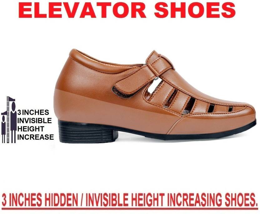 Bxxy 3 Inches Elevator/Height Increasing Casual Roman Sandals, "Hidden Heel Technology" is used, Export Quality Leather inner lining adds to comfort. Designed for perfect fit, Hidden Height Increasing+Heel Height=3 Inches,Material- Leather, Sole - Air Mix. Occasion - Formal/Party Wear. Items Included In Package 1 Pair Of Bxxy Hidden Height Increasing Shoes. Hidden Heel Technology Used, Comfortable Easy fitting Long lasting shine Light weight , elevator Sandals increases your height with our "Hidden Heel Technology".Care Instructions: 1.Use paste, wax or cream polish to shine your Shoes regularly, 2.Make sure the polish matches the Shoes. Store In a Dry Area. Do not wear them in water logged area. High Quality Leather,Bold Design And Supreme Comfort. The Perfect Combo For The Modern Gentleman To Look Taller By More Than 3 INCHES.