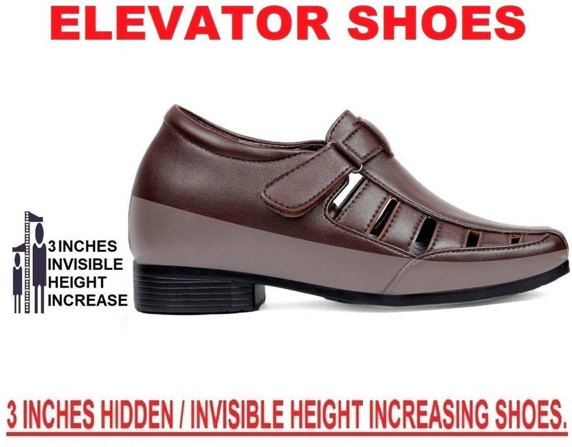 Bxxy 3 Inches Elevator/Height Increasing Casual Roman Sandals, "Hidden Heel Technology" is used, Export Quality Leather inner lining adds to comfort. Designed for perfect fit, Hidden Height Increasing+Heel Height=3 Inches,Material- Leather, Sole - Air Mix. Occasion - Formal/Party Wear. Items Included In Package 1 Pair Of Bxxy Hidden Height Increasing Shoes. Hidden Heel Technology Used, Comfortable Easy fitting Long lasting shine Light weight , elevator Sandals increases your height with our "Hidden Heel Technology".Care Instructions: 1.Use paste, wax or cream polish to shine your Shoes regularly, 2.Make sure the polish matches the Shoes. Store In a Dry Area. Do not wear them in water logged area. High Quality Leather,Bold Design And Supreme Comfort. The Perfect Combo For The Modern Gentleman To Look Taller By More Than 3 INCHES.