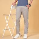 Men Slim Fit Grey Cotton Blend Trousers