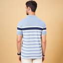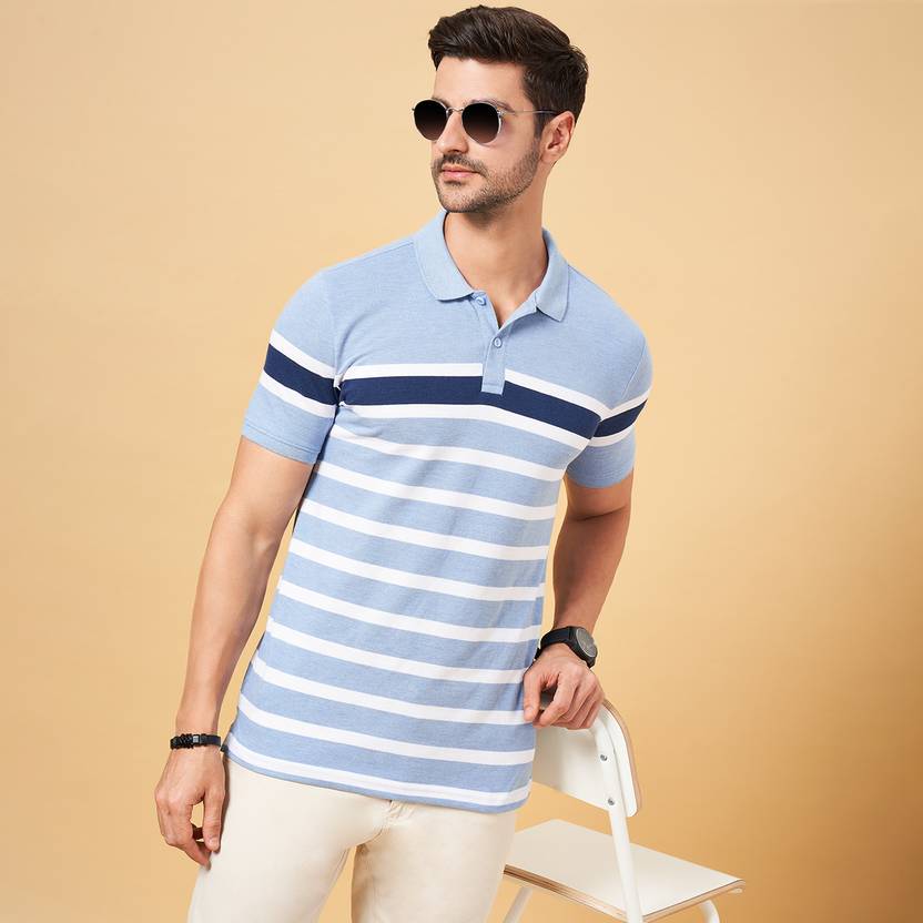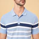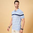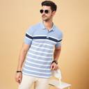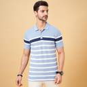 Men Striped Polo Neck Cotton Blend Blue T-Shirt