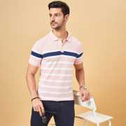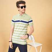 Your wardrobe hero is here! This T-shirt has a polo collar with a button placket, half sleeves and a charming striped pattern. Crafted from superior, quality material that will make you look and feel great.