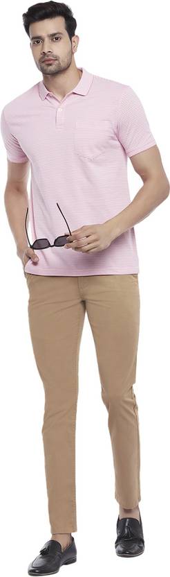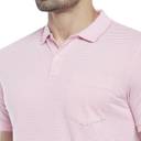 Freshen up your wardrobe with this polo T-shirt. The design comprises a collared neckline with a 2-button placket on the front, half sleeves and a patch pocket on the front. Additionally, it features an eye-catchy all-over striped pattern. Constructed using premium cotton-polyester fabric to deliver comfort along with style.