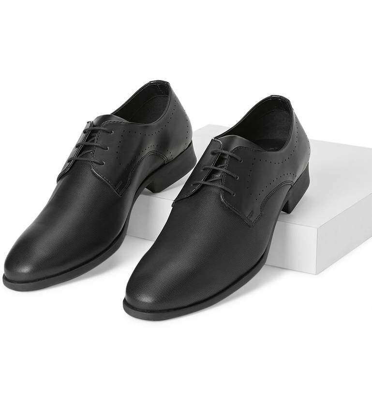 Ace your daily workwear style by adding this sleek pair of shoes. It features a round toe, lace closure, micro embossing on the body, a low heel, and a perfect outsole. Made from top-notch materials that will lend you the utmost comfort.