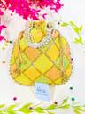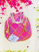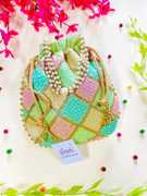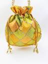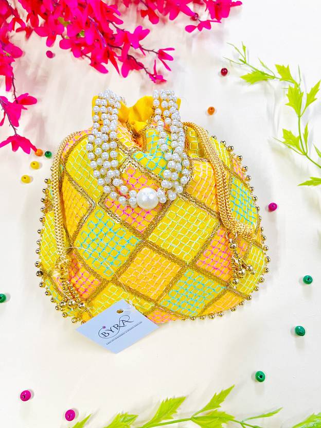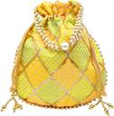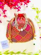 Women Multi Color Thread silk Potli with Pearl Handle & Golden Latkan