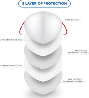 Courtesy of their up to five-layer design, these masks are made from non-woven material that balances filtration and airflow. They include layers, like SMS, meltblown, and soft spunbond materials, all chosen for specific roles in filtering particles while staying kind to your skin. The layered structure helps maintain comfort, breathability, and effective coverage during every wear.