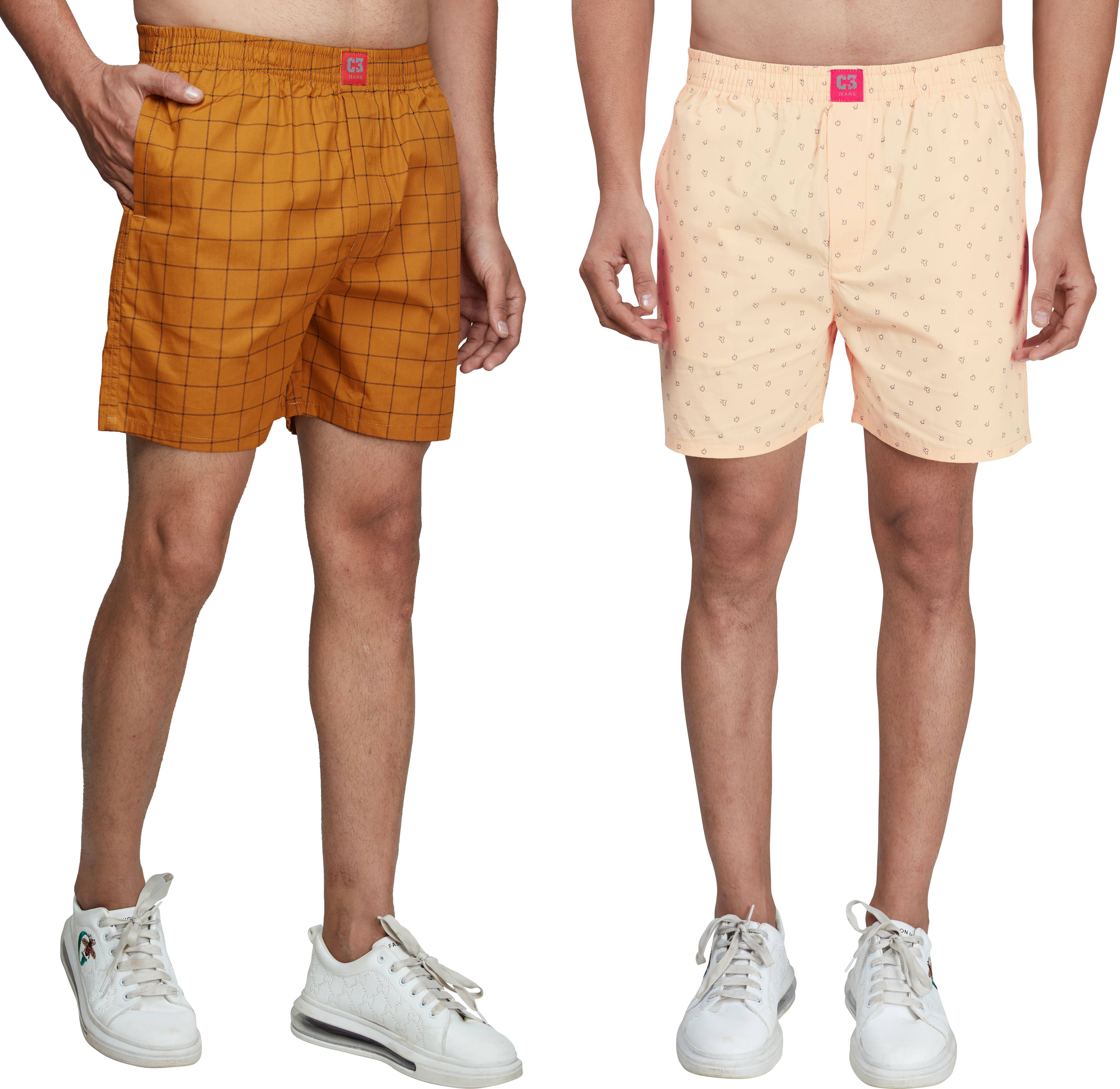 Limited Designer Series 100% Cotton printed boxer shorts for men with back pocket and button fly opening. Superior quality cotton fabric that feels soft to the skin and is comfortable for long hours. Intelligent fit that makes it possible to wear it as a standalone boxer or inner-wear.