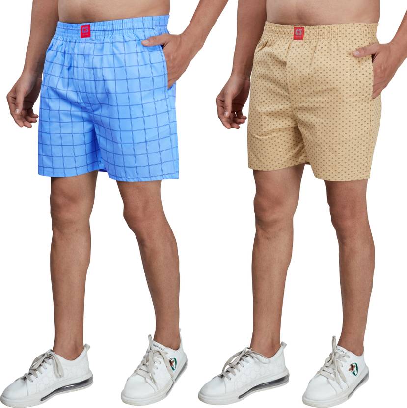 Limited Designer Series 100% Cotton printed boxer shorts for men with back pocket and button fly opening. Superior quality cotton fabric that feels soft to the skin and is comfortable for long hours. Intelligent fit that makes it possible to wear it as a standalone boxer or inner-wear.