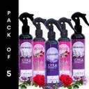CABRESE Snowfall, Rose, Snowfall, Rose, Lavender Spray Black bottle packaging premium room freshener (5 x 250 ml)