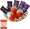 Cadbury Dairy Milk & Kinder Joy Chocolates Gift Hamper | Premium Chocolate Gift Tray To Gift Your Loved Ones On Valentine | 039 Combo (1 Tray , 5 Dairy Milk (13.2g), 3 Kinder Joy(20g), 1 Love Card)