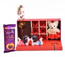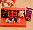 1 Dairy Milk Silk, 1 Message Bottle, 1 Red Gift Box, 1 Set Kissing Couple