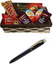 2 Dairy Milk (13.2g) - 1 lotte Choco Pie (25g) - 1 Twix (50g) - 2 Kinder Joy (20g) - 1 Dark Fantasy (75g) - 1 Basket - 1 Pen