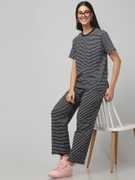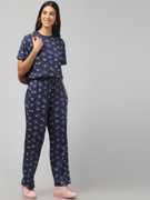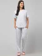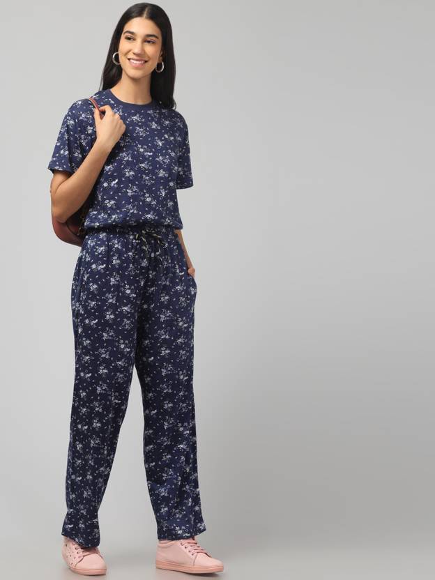 Elevate your loungewear collection with this charming floral print night suit set, designed for ultimate comfort and relaxed style. This two-piece set features a soft, round-neck T-shirt and matching straight-fit pyjamas, both crafted from breathable cotton hosiery fabric. The all-over delicate floral pattern in subtle hues adds a touch of femininity, while the relaxed fit ensures ease of movement—perfect for unwinding at home or a peaceful night’s sleep
