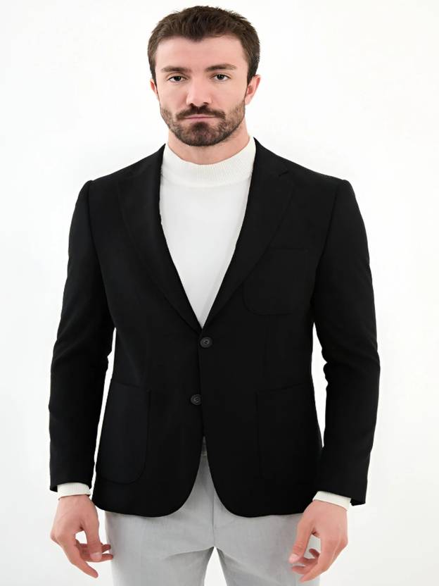 Men's Black Blazer – perfect for office, formal events, parties, and weddings. Made from premium breathable fabric, it features a smart slim fit, notched lapel, and two-button closure. Pair with trousers or jeans for a classy look. Comfortable, wrinkle-resistant, and tailored for Indian body types.