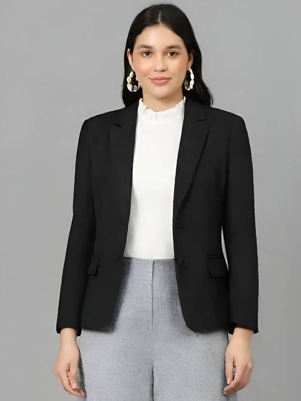 this elegant black blazer for women, designed for both formal office wear and smart casual outfits. Made from high-quality fabric, this blazer offers a comfortable fit and a sleek. Perfect for meetings, parties, interviews, or daily workwear, it pairs with shirts, tops, and dresses