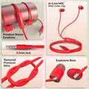 Caidea CHF500 - 3.5mm Jack Clear Hi-Fi Sound, Deep Bass Wired Earphone With Mic Wired (Red, In the Ear)