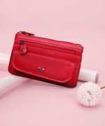 This small coin and key holder which is flat and three zipper pockets to keep small utility things like coins, keys, jewelry etc. It has got one zipper pocket at the front, top and back which helps you to keep your cards and keys safe one flap focket in the front also. It's height 10 cm, length 13 cm and width 2 cm.