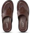 These men's brown flip-flops offer a blend of comfort and style for everyday casual wear. Featuring a classic thong strap design, they are easy to slip on and off. The upper appears to be made from a synthetic leather-like material, providing a clean and polished look, while the sturdy sole ensures durability and grip. The footbed is designed for comfort, making them ideal for extended wear around the house or for quick errands. Compatible with casual attire such as shorts, jeans, and loungewear.
