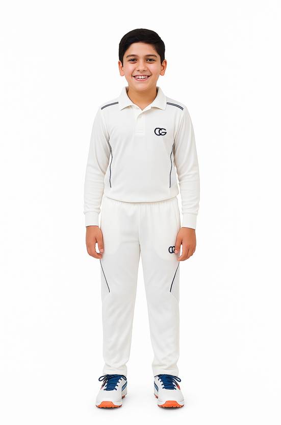 CG CALIGOSTLE brings you a complete white cricket uniform for boys, featuring a full sleeve t-shirt and matching lower. Ideal for school matches, tournaments, cricket academies, and daily training, this cricket kit is made for young players who value both comfort and performance.