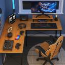 Callas Gaming Computer Table with Smooth and Surface | L-Shape Corner Desk | Engineered Wood Multipurpose Table (Free Standing, Finish Color - Walnut, Knock Down)