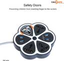 Callmate Hexagon Extension Board with 4 Sockets + 4 USB Ports (2.0 Amp), Multi Switched Socket USB Hexagon Charging Station EU Plug Multi Plug Use for Home & Office 4 Socket Extension Boards (Black, 1.7 m, With USB Port)