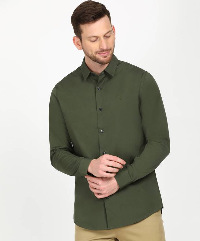 Calvin Klein Jeans Men Olive Solid Shirt. Crafted With Cotton. Material Composition Is 96% Cotton, 4% Elastane.