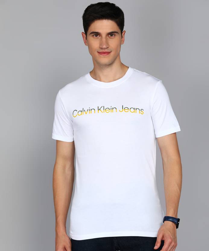 Calvin Klein Jeans Printed Men Crew Neck White T-Shirt