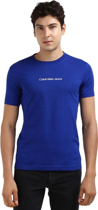 Calvin Klein Solid Men Crew Neck Blue T-Shirt